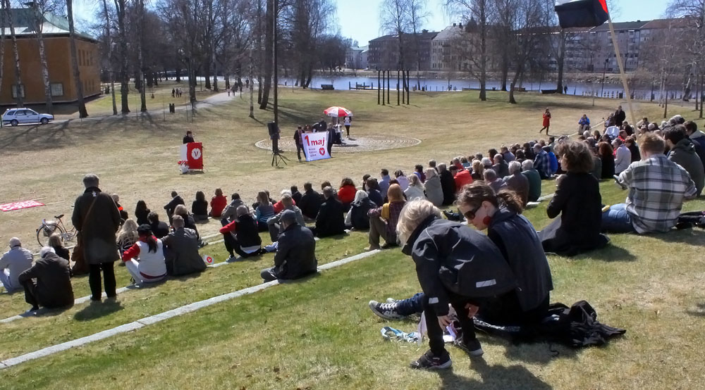 Vänsterpartiet firar Första maj Sverige runt, för att uttrycka vår vilja till förändring av livsvillkoren och arbetsförhållandena i vårt land. Men vi gör det tillsammans med alla andra progressiva krafter världen runt.
